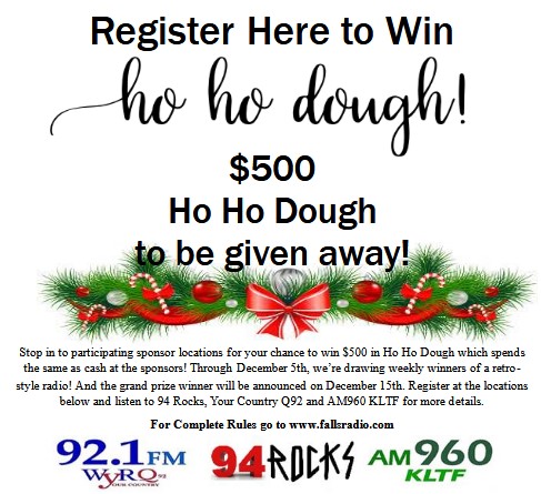 This is the LAST week to qualify for the Grand Prize drawing at these Ho Ho Dough Sponsors. Register before Saturday 12/13.